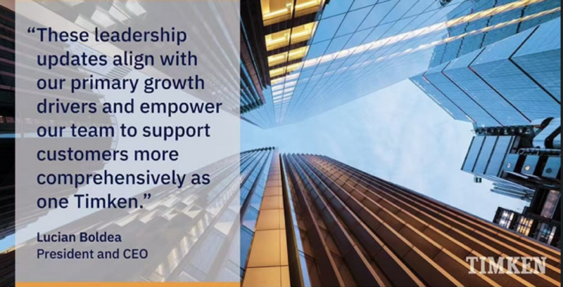 鐵姆肯公司總裁兼首席執行官Lucian Boldea表示,“這些有針對性的管理層調整,與公司的核心增長驅動因素高度契合,并將進一步賦能我們的團隊,以‘一個鐵姆肯公司(One Timken)’的整體合力更全面地支持客戶。”